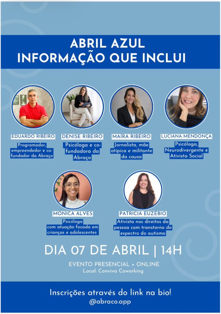 Em alusão ao Abril Azul, mês dedicado à conscientização sobre o Transtorno do Espectro Autista (TEA), a Abraço realizará, no próximo dia 7 de abril, um encontro especial voltado à disseminação de informação qualificada, fortalecimento de redes de apoio e promoção da inclusão de pessoas neurodivergentes.