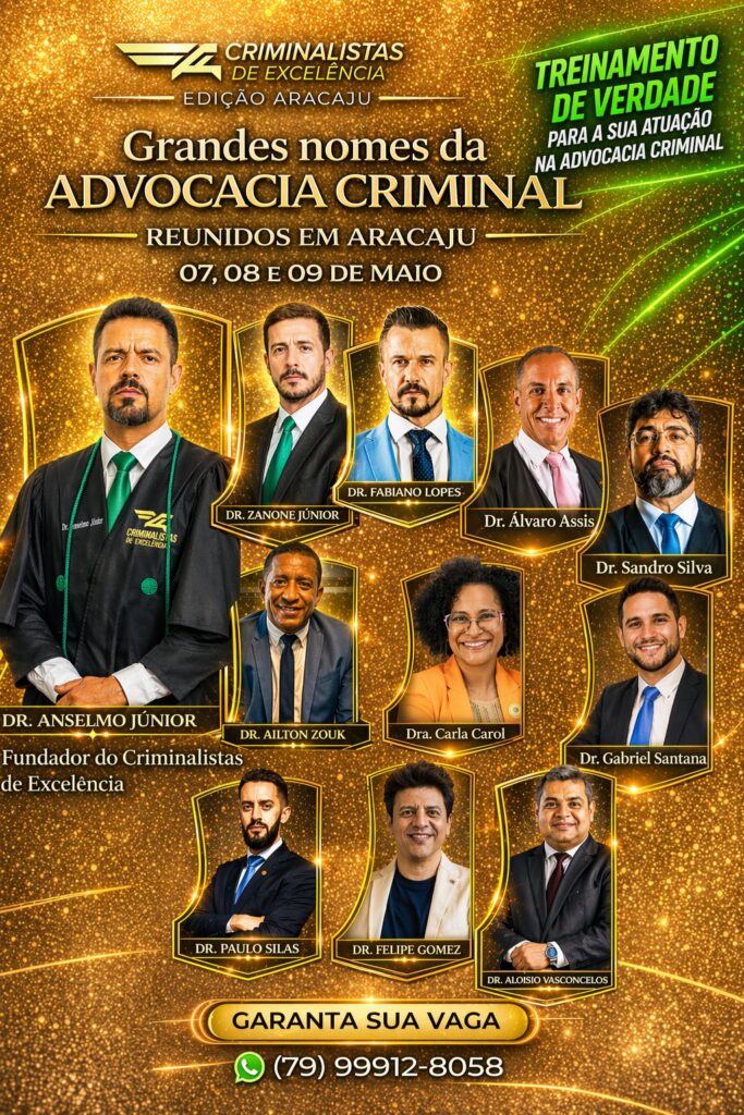 Entre os dias 7 e 9 de maio, Aracaju vai ser palco do evento ‘Criminalistas de Excelência’ que é um treinamento jurídico de alto nível, voltado à capacitação prática de advogados e estudantes de Direito que desejam atuar ou se destacar na advocacia criminal. Nos dois primeiros dias, imersão será realizada das 8 às 22h no auditório da Escola Superior da Advocacia (ESA) e no sábado, das 9 às 14h no Aracaju Parque Shopping. A assessoria de imprensa é da Navarro Comunicação.