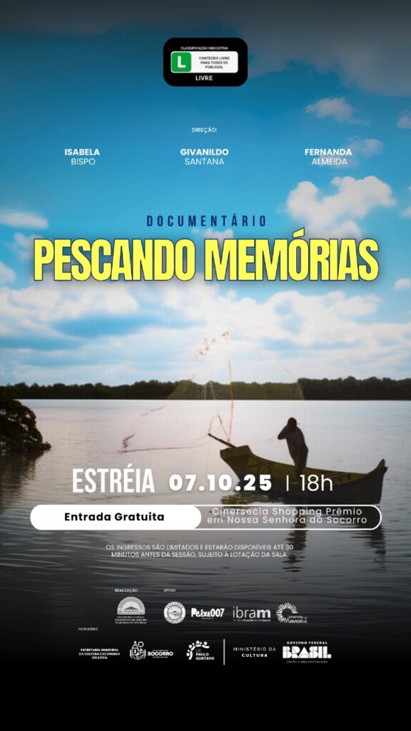 A realização do documentário ‘Pescando Memórias’ é do Instituto Cultural e Esportivo de Sergipe – Piabinhas do São Braz com recursos da Lei Paulo Gustavo do Ministério da Cultura através do chamamento público da Secretaria de Cultura e Economia Criativa do município de Nossa Senhora do Socorro com apoio do projeto sociocultural ‘Pescando Memórias’, da Peixe 007 produções e do edital de Pontos de Memória do Instituto Brasileiro de Museus.