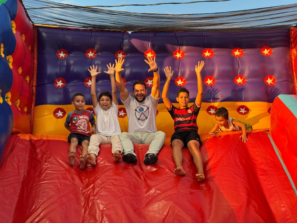 O evento reuniu moradores da região em uma tarde repleta de atividades recreativas, com brinquedos infláveis, cama elástica, pipoca, algodão doce e distribuição gratuita de brinquedos. A ação foi organizada com apoio de voluntários e parceiros locais, reforçando o compromisso com a solidariedade e o cuidado com a infância.