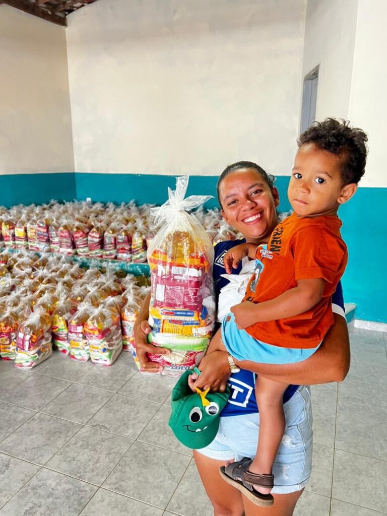 A iniciativa, realizada em parceria com a rádio 13 FM, contemplou famílias com a entrega de cestas básicas.