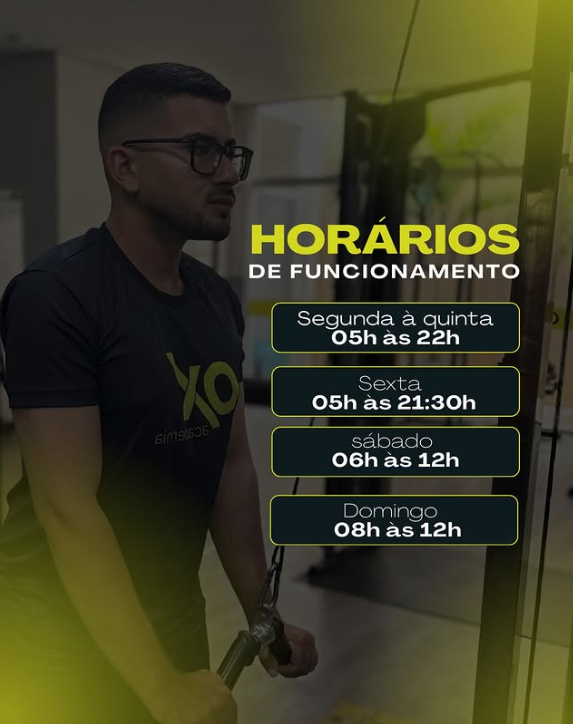 Pensando nisso, a OX Academia disponibiliza vários horários de funcionamento para que você encaixe o treino no momento que mais combinar com sua agenda, seja cedo pela manhã, durante a tarde ou à noite.