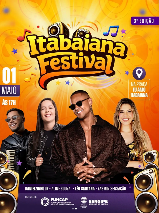 Nos dias 30 de abril e 1 de maio será realizada a 3ª edição do Itabaiana Festival, levando música e animação para a cidade de Itabaiana.