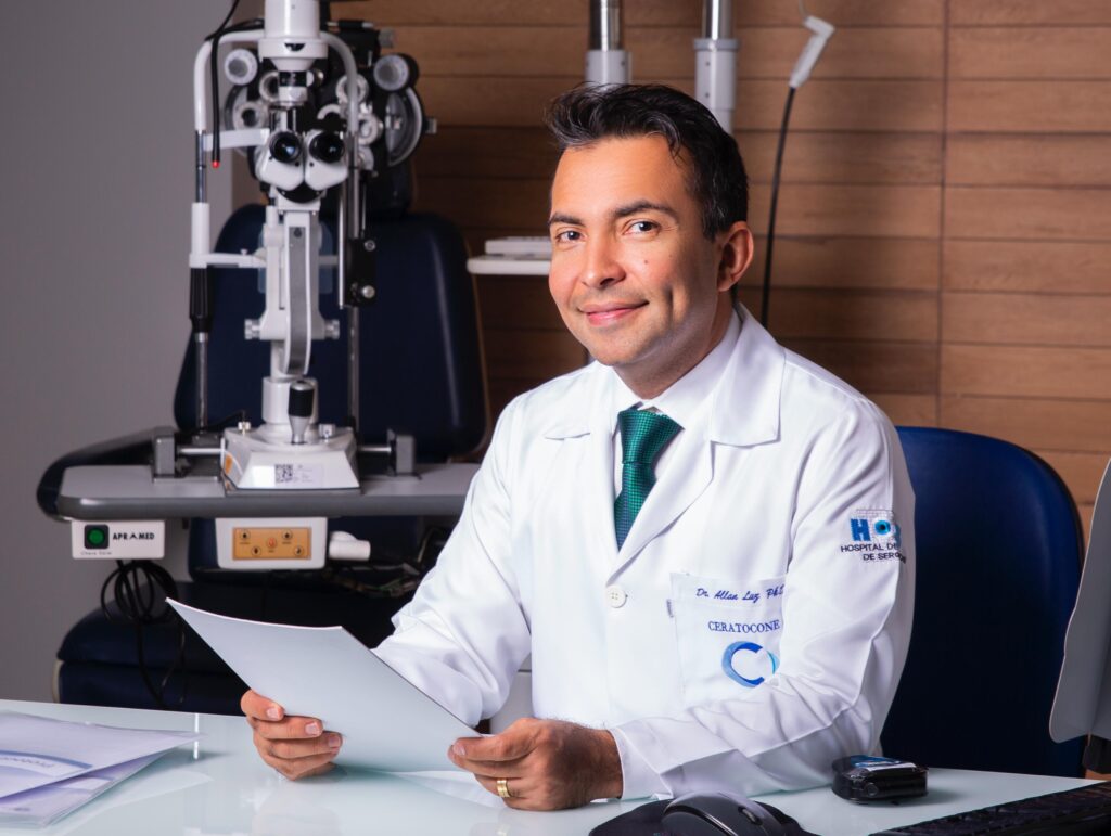 Especialista em transplante de córnea, tratamento do ceratocone e cirurgia refrativa, Dr. Allan Luz tem uma trajetória consolidada na oftalmologia. Formado pela Universidade Federal de Sergipe (UFS), iniciou sua carreira ao lado do Dr. Mário Ursulino, fundador do Hospital de Olhos de Sergipe (HOS), referência na área no Estado. Atualmente, é professor e coordenador do curso de especialização do HOS, pioneiro e único na área em Sergipe, além de presidir a Sociedade Sergipana de Oftalmologia.