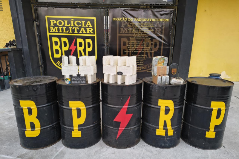 A equipe da Radiopatrulha foi ao local indicado e encontrou um homem em meio à mata que, ao perceber a presença policial, atirou contra os militares e fugiu. Após a devida resposta e uma varredura na área, a equipe localizou um rastro que levava a um tonel azul escondido. Dentro do recipiente, foram encontrados 26,85 kg de cocaína, 6,3 kg de crack e 250 g de maconha.