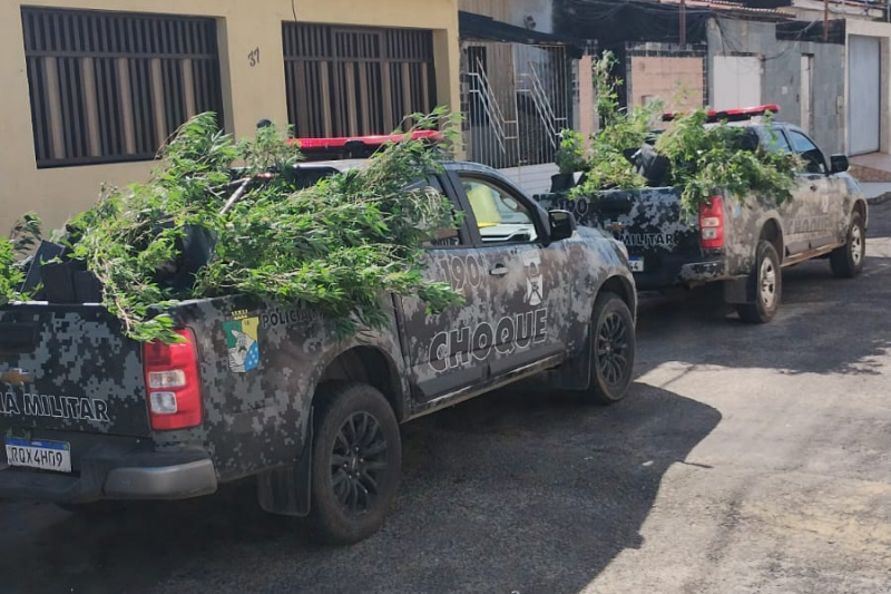 Ao se deslocarem para verificar a denúncia, os militares confirmaram o forte odor e, já na garagem do imóvel, visualizaram dois vasos contendo plantas idênticas à maconha. Diante da situação de flagrante e da aparente condição de abandono da casa, a equipe realizaou a entrada tática.