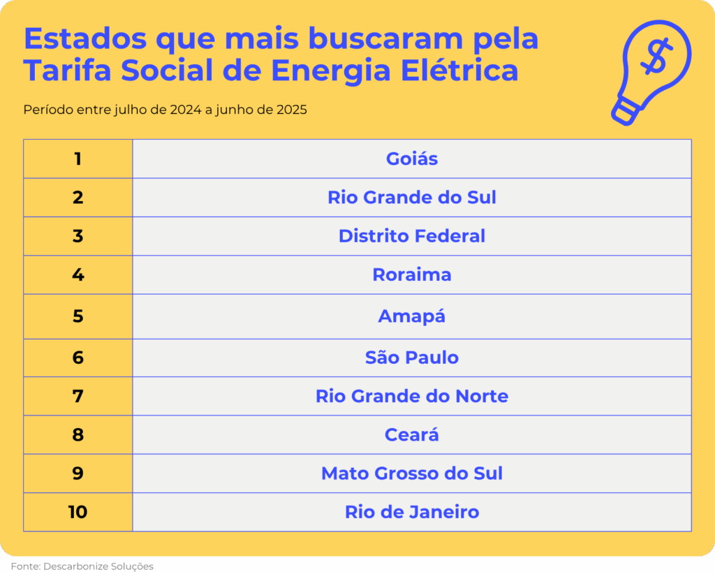 O estudo foi desenvolvido pela Descarbonize Soluções, empresa especializada em soluções de energia limpa, que também revelou os estados brasileiros nos quais mais se pesquisou pela nova Tarifa Social e por como se cadastrar no benefício.